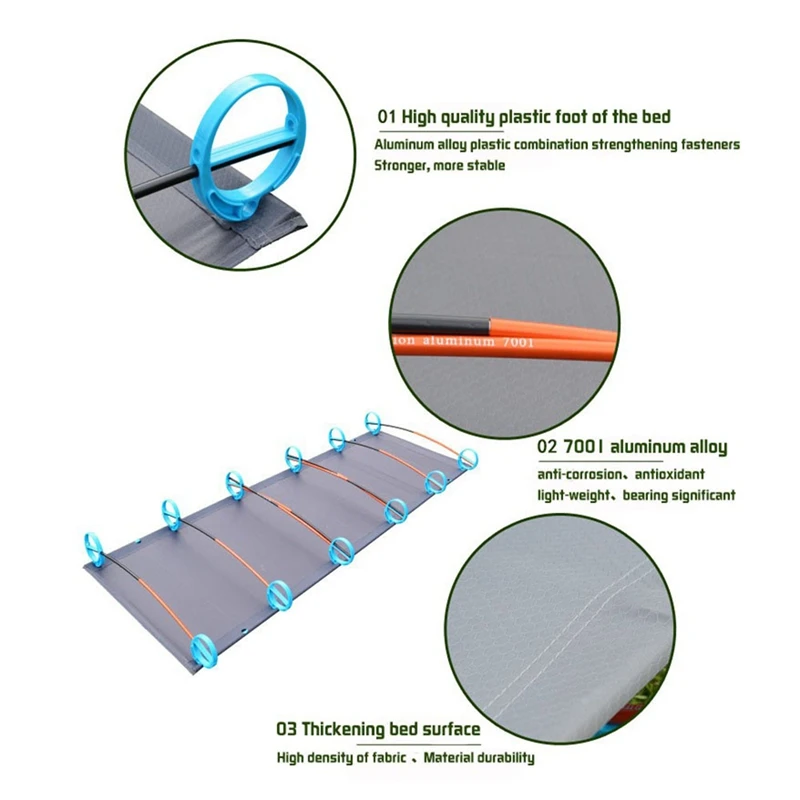 Outdoor Camping Mat Portable Ultra-Light Aluminum Folding Bed Multi-Function Rest Bed Travel Mounta